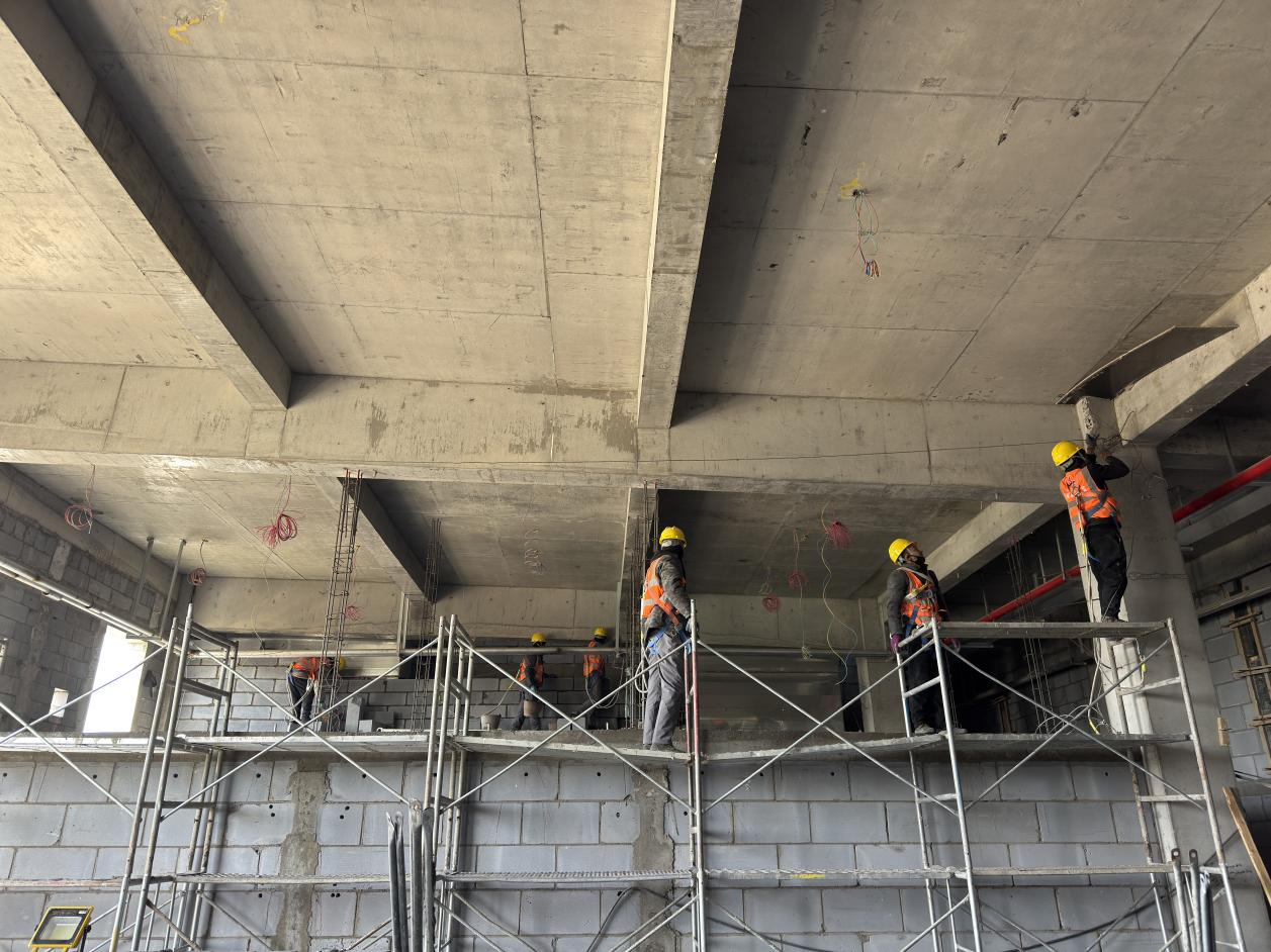 為確保7.30中交節(jié)點(diǎn)如期完成,團(tuán)隊(duì)制定了詳細(xì)施工計劃,合理安排施工時間。本月底,全體施工人員將加班加點(diǎn),全力沖刺內(nèi)管廊和防火涂料施工任務(wù),確保其全部完成,同時有序展開廠房地坪全面施工。